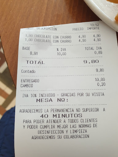 Read moreI visited this place on Sunday for breakfast. I ordered churros con chocolate. The girl waiting there was rude. She brought me my order and threw the bill on the table along the food and the bill wasn't even mine. I ordered for 1 and in the bill they charged for 2. The churros were served on the bed of sugar.