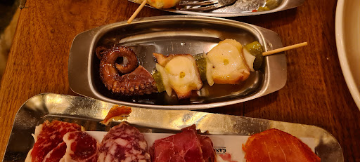 Sun, beer and a cathedral. At a very reasonable price. The setting is extraordinary, as you can eat sitting at a table which looks directly to the stunning Burgos cathedral. So nice, that we went there twice in two days. You can have some nice and good quality pulgas, gildas, raciones and other things (nice taco de bonito) (for the American friends, not "that" taco) to accompany your vermouth "preparado". The service is fast, effective and accomplished... if a bit dry and smile-less in some of the staff. But only some. And maybe it was a bad day, I don't know. I will anyway definitely come back if I'm ever again in Burgos (hopefully, their prices...