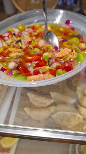 El sitio en sí es muy amplio y las mesas están muy separadas, lo que da una sensación de espacio y comodidad. La decoración y la iluminación son impresionantes, creando un ambiente fresco y agradable dentro del local. Todo está muy bien organizado, y el personal es muy simpático y atento.