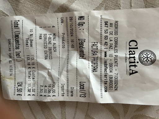 Read moreDe vuelta a casa de nuestras vacaciones de verano decidimos exprimir el último día visitando Burgos. Buscando en Google un sitio que nos sorprendiera para comer dimos con La Doña Clarita, y que razón tenía San Google, porque volvemos a Madrid con un sabor de boca inmejorable. Hemos comido super bien atendidos y sorprendidos con cada plato. Hemos hecho un jueguito de ir puntuando cada plato (mi hijo de 10 años también ha comido el mismo menú) y ha sido muy divertido ver cómo todos estábamos disfrutando cada plato desde nuestra perspectiva. Tanto el chef como la chica que atiende la sala, han sido súper amables y súper profesionales. El detalle de salir a saludar a mi hijo por parte del chef y el chai-late tan currado que le ha hecho la chica, no tiene precio. Felicidades a los dos! Y...