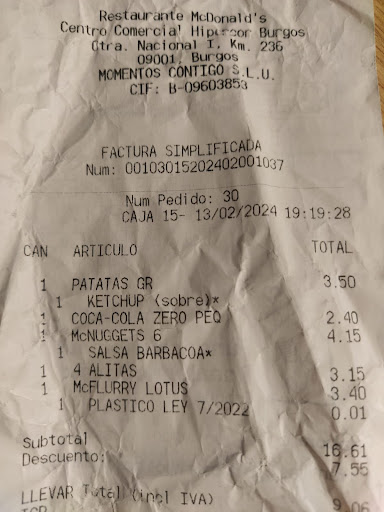 Read moreMis hijos y yo somos usuarios habituales de McDonald's allá donde vayamos, y me da pena tener que decir que la gestión del McDonald's donde el Hipercor de Burgos ha sido desastrosa. Es verdad que era domingo de Semana Santa, y por tanto todos los demás sitios de comida estaban cerrados; había muchísima gente y todo el mundo hacía lógicamente sus pedidos de forma imparable. Era normal por tanto que se acumularán largas listas de pedidos en espera, eso no es culpa del equipo. Lo que sí es criticable al equipo que trabaja allí es que la velocidad a la que sacaban cada pedido era extremadamente baja. Y la gestión que hacían del sistema de información de pedidos era totalmente caótica: se marcaban de pronto varios pedidos todos s juntos como que estaban listos para entrega, pero realmente no lo estaban, luego desaparecían del listado de pedidos listos aunque no habían sido realmente todavía entregados. Y como yo, la mayoría de la gente tuvo que esperar más de 1 hora y 20 minutos en que saliera el pedido, con las bebidas sin gas y sin ningún miembro del equipo con tiempo suficiente como para cambiar la carga. Y no eran pocas personas trabajando. McDonald's debería enviar ayuda a ese local para revisar lo que pueden estar haciendo mal en cuanto a la organización de ese equipo, y seguramente mejorarán para poder ofrecer unos tiempos de...