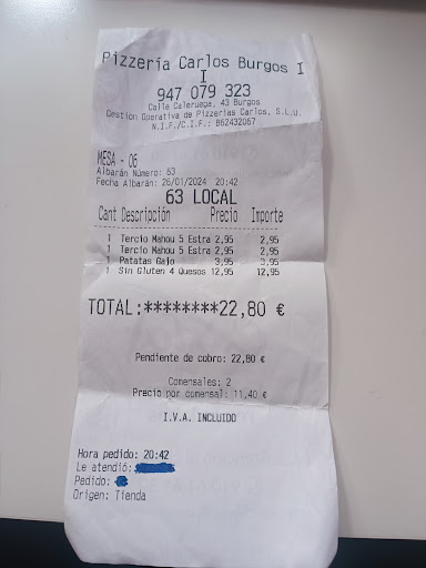 Read moreExperiencia desastrosa. Tras mirar la carta, preguntamos a la persona que nos atendió si la pizza 4 quesos sin gluten era igual que la normal a excepción del gluten y nos dijo que sí. Finalmente nos decantamos por la opción sin gluten y por unas patatas. La ración de patatas parecía que las habían tirado en el plato y la salsa no era hecha allí. Cuando sacaron la pizza y tras probarla era bastante insípida y nos dió la sensación de que era congelada. Preguntamos y nos confirman que sí, que las sin gluten son congeladas cuando en la carta no indican nada y nos dijeron que eran como el resto de pizzas. Entenderán que cuando uno va a una pizzería es para comer pizza recién hecha y no congelada. Y hablando de congelados, así nos quedamos ya que en el local hacía un frío de cuidado. Gente esperando para llevarse su pedido a casa pegados a tu mesa....en fin. Desastre absoluto. Únicamente mencionar que la persona que nos atendió fue correcta y amable. Obviamente,...
