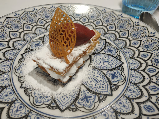 👨🏼🍳 En cocina, Saúl combina con destreza influencias asiáticas y locales: espárrago a baja temperatura osmotizado con remolacha, mantequilla de anchoa y nieve del agua del propio espárrago; chili crab de cangrejo de mar con su sopa a los cuatro chiles o carrilleras de Black Angus a baja temperatura con puré de remolacha … Texturas, temperaturas y contrastes bien armados, con platos que sorprenden sin perder el norte.