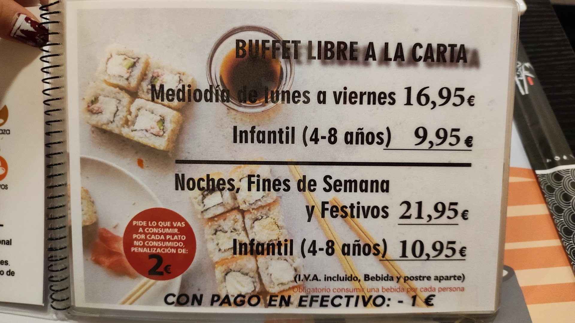 Read moreDO NOT GO HERE IF YOU HAVE EATEN ASIAN FOOD LITERALLY ANYWHERE ELSE. This place makes japanese food horribly wrong like a spicy tuna roll with spanish salsa?? I feel lucky I was not poisoned since the quality is so bad. And when I asked for a second cup of tea, the waitress snatched the cup out of my hand, and overall had a terrible attitude. She constantly sneered at me and was so unpleasant. Also they wouldn’t let me order sashimi so I just got Nigiri and ate the fish off of the rice. They charged me €2 per piece of food left so I paid like €10 on top of the buffet price of €16,95 just because I left the rice. I SERIOUSLY DO NOT...