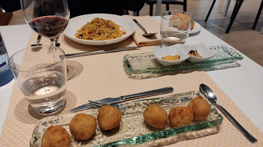 Fuimos recomendados por mi madre, que suele celebrar su cumpleaños ahí con sus amigas, y tengo que darle la razón. Increíble lo bien que comimos y lo amables que fueron quienes no atendieron. Pedimos arroz cremoso de presa ibérica ahumada y boletus con emulsión de mostaza. Impresionante, muy sabroso. Quizá la única pega sería la escasa cantidad y las motas de lo que supongo es mostaza, que no le hacían mucho favor al plato. La pasta a la putnesca (increíble tener que censurarla o no me deja publicar la reseña) estaba sensacional, muy rica y llena de sabor. El bacalao estaba también muy rico, jugoso y suave. Quizá lo que menos nos gustaron fueron las croquetas de cecina y queso de cabra. No es que estuviesen mal, pero sin más, nada memorables, y menos en comparación con el resto de la comida. Nos quedamos con ganas de probar los postres, especialmente si hay algo de chocolate, pero en otra ocasión. ¡Volveremos sin lugar a duda, muy gratamente...