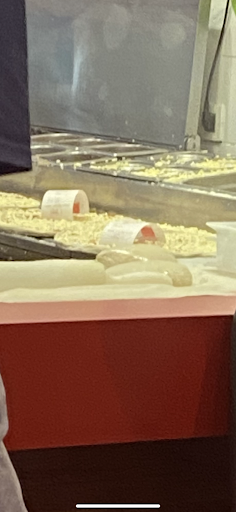 Las patatas muy escasas. Para ser un producto tan barato no entiendo el porqué del racaneo. Los queseños han llegado como se ve en la foto, con el queso desparramado. Es en resumen una masa de pan y queso.