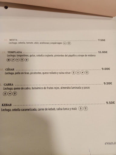 Pedimos la ensalada de chopitos que es un montón de lechuga con los chopitos que te pides en el vermut por encima. El único aliño que lleva es vinagre balsámico de Módena que queda muy bonito, pero la lechuga sin aceite igual les gusta más a las vacas.