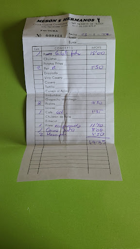 Read moreMalgré de nombreux commentaires négatifs, nous sommes passés prendre le repas de midi dans le Mesón Cinco hermanos en descendant de Las cuevas de Canelobre comme beaucoup de touristes l'ont certainement fait. Contrairement à d'autres avis le repas était très bon, servi avec courtoisie et pas de mouches à l'horizon. Peut-être est-ce une question de saison ? Cuisine maison et traditionnelle. Nous avons profité de la grande salle climatisée, mais il y a aussi une terrasse très sympa pour prendre son repas ou juste une boisson dehors avec vue sur les montagnes dont le Cabezón de oro. L'accueil était très agréable. Le restaurant fait des soirées animées avec musique le samedi. Nous pensons y retourner justement pour une soirée. Les tarifs sont très honnêtes et abordables. Il faut commander à la carte, il n'y a pas de menus sauf lors des soirées animées ou peut-être certains jours de la semaine ? Nous y sommes allés ce mardi. La paella était goûteuse👍😋 Nous avons pris l'Alicantina. La salade "especial" était copieuse. Cette paella, cette salade et le cadre rappellent la cuisine typique des "Mesón" que j'ai connus dans mon enfance. Très bonne sangría et le "flan", un œuf au lait, est fait maison et excellent. Cuisine authentique servie par des gens sympathiques. Tout dans la simplicité sans chichis. Nous avons apprécié les discussions avec la patronne. On se sent comme des habitués. Le parking est suffisamment grand et certaines places profitent d'un ombrage sous une vigne. Je recommande vivement cet endroit. Faites vous votre propre idée et...