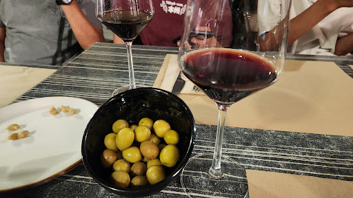 The second experience was for menu del dia lunch. We sat inside because it was too hot outside and not much shade for the tables left. At 18.90 euros pp it included an appetizer, main, dessert, 1 piece of bread, 1 cup of beverage (wine, beer, water or soft drink). Wine pour was generous. The portions were good for the price. For appetizers we had were: the mushroom risotto, which was very good this time and seasoned perfectly. Miga with paprika. It had sausage flavoring but no sausages in the dish. The chicken salad was delicious, it had fried breaded chicken "nuggets: over a bed of greens. For the mains we ordered pork knuckles with potatoes. This was the best entrée. The pork was tender, fall-off-the-bone moist, and not fatty. The potatoes that accompanied several of the dishes were delicious. Grilled pork tenderloin was pan-fried. They were as expected. The cod with eggs and potatoes wasn't what I thought it would be. It was pretty much a scrambled egg. A disappointment for me. One of the dishes delivered was wrong but we didn't bother to correct it since we were perfectly happy with the mix-up dish that arrived. Dessert was good. Coffee was an espresso. For the people with smaller appetites, we had to pack away some food which the staff kindly obliged. It was packed very well and still delicious when we ate it for dinner that night. Service was friendly and efficient. The aircon at the table we sat at was a tad too strong for me. We enjoyed the food at lunch. 4.5...