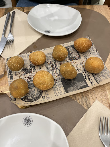 Existe un menú del día por 16.9€ bastante completo aunque nosotros optamos por pedir a la carta. Para abrir boca comenzamos con una bomba de patata la cual estaba muy sabrosa y que es uno los platos marca de la casa y continuamos con una selección de croquetas, muy cremosas en su interior y crujientes por fuera destacando por encima de las demás las de gamba y las de boletus.