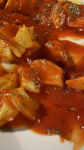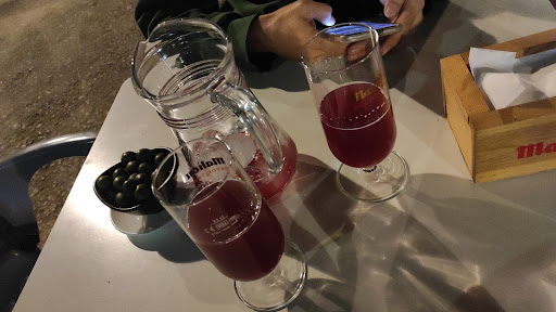 Read moreLa terraza está en un lugar agradable, ya que está junto al césped y plantas de un parque y eso da algo de frescor en las noches de verano y se agradece el no estar en plena acera junto a los coches pasar. Por el resto, el servicio normal. Las raciones son abundantes pero tendrían que mejorar, las patatas bravas, es de agradecer que no sean congeladas y además estén bien fritas, pero la salsa, era de tomate (la original no lleva tomate) picaba muchísimo y estaban bañadas todas las patatas en salsa. Aunque estuviera buenísima la salsa, no queda bien tanta salsa. Luego pedimos una ración de rejos, el plato enorme y lleno, pero duros e insípidos, no sabían a nada y te cansabas de masticar para no sacar sabor por lo que nos dejamos bastantes. Y por último pedimos los manojos de gambas, que son 4 gambas peladas pinchadas juntas y rebozadas. Es algo original y no estaban mal. Resumiendo, nos gustó el sitio, pero las raciones, aunque grandes y con buena intención, no nos gustaron. Por cierto, tienen...