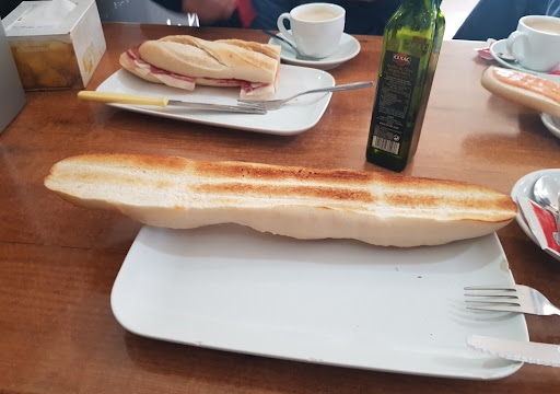 Los clientes suelen elogiar la calidad de la comida y la atención del personal. Por ejemplo, una reseña menciona: “Un café con leche y media tostada que resultó ser media barra de jamón con tomate. Rápido, muy rico y económico. Genial para desayunar y para raciones.”
