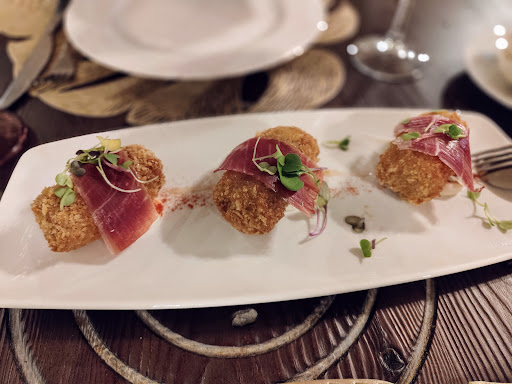 Read moreMe ha parecido un restaurante estupendo. Os recomiendo hacer reserva porque tiene muchas mesas en la terraza pero en el interior son reducidas. De hecho, tenía todas las mesas completas. Fuimos a cenar y probamos las croquetas de patatera sobre crema de torta y miel de Las Hurdes (brutales, no se me ocurre mejor manera de recopilar los emblemas gastronómicos de la zona), tataky de atún con tempura de alga wakame (espectacular) y pulpo sobre patata revolcona, panceta ibérica y pimentón de la vera (o pulpo extremeño). La verdad es que estaba todo riquísimo, el servicio muy amable y atento y el ambiente excelente. Y muy buena carta de vinos de la zona. No es barato pero, sin duda,...