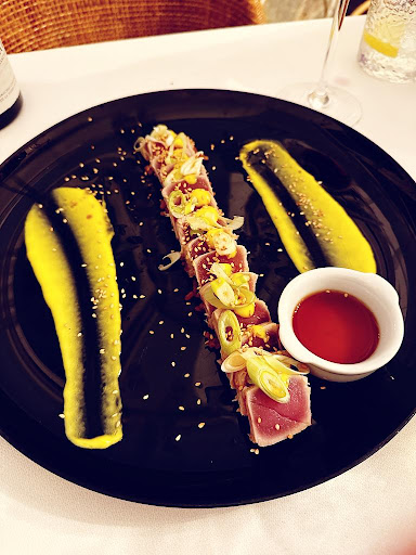 El segundo plato fue el Tataki de atún. La verdad es que nos llevamos una decepción debido a que el corte del propio Tataki era minúsculo. Nuevamente cantidad escasa. Hemos comido Tataki en muchos lugares pero la verdad que en este nos llevamos un poco una decepción debido a su forma de cocinado bastante reseco sobre todo en los bordes, algo pasado de punto y sin servir a la temperatura correcta.