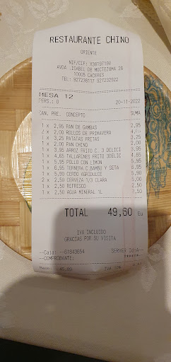Read moreLlevo pidiendo a este establecimiento hace más de 6 años y en el día de hoy la experiencia fue muy desagradable. La comida estaba totalmente en malas condiciones, tanto como para darte una intoxicación alimentaria. Ensalada China: la cuál traía toda la lechuga podrida por completo y no tenía ni rastro de algas, jamón York ni zanahoria rayada. *Tallarines fritos con pollo: ( por decir pollo porque aquello no parecía pollo) eran sobras de tallarines de otras ocasiones cortados en trozos como cuando le picas los spaguettis a un niño de 2 años. Por no hablar del supuesto pollo que estaba añejo y sabía rarisimo. *Arroz frito con gambas: (2 gambas que saben a cámara refrigeradora de hace meses) El arroz sabe a quemado y está insípido.