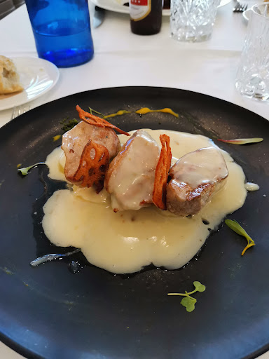 Read moreTeníamos reservado en el restaurante (no en la tapería) porque era un cumpleaños y queríamos que fuera especial. En la entrada al salón se forman colas, pues tienes que esperar a que te dé paso la encargada de la recepción y como el proceso es lento tienes que esperar cola aunque tengas reserva. Al entrar el salón es precioso y acogedor, limpio y con gusto. Lo único malo era que había mucho ruido y retumbaba , pero es culpa de las voces de los comensales. El problema vino con la atención. 25 minutos esperando a que nos atendieran una vez sentados, ni nos miraron, la mesa de al lado estaba igual, no nos dijeron ni un "ahora mismo os atendemos", un auténtico desastre, no parecían tener mucha profesionalidad. Por fin nos toman nota, y el carpaccio de pulpo de entrante muy bien, el problema fue la decepción del mi-cuit, 20€ el plato por seis tiras finas de foie cortado, no me lo podía creer. Menos mal que con las carnes lo remediaron, todas muy buenas (sobre 20-25€ el plato también) y bien presentadas. Pero no entiendo como no son más consecuentes con la cantidad y los precios de algunos platos. El mini bollo de pan 1.20€ por persona, cuando todos sabemos el precio que tiene el pan. Y el Café 1.70€. Por si alguien le interesa. Si no hubiera sido porque la atención no fue buena y por el plato de mi-cuit habríamos quedado contentos. La verdad con todos los sitios que hay en Cáceres no creo que repitamos aquí. La foto corresponde al aperitivo de la casa...