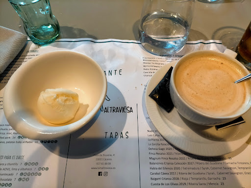 Read moreSegunda visita, alentado por la grata primera experiencia hace más de un año. Carta bien estructurada, con guiños a la cocina andaluza, nada pretenciosa. Esto tengo y se hacer, es lo que te ofrezco= honestidad. Opte por um primer entrante fuera carta( tienes unos pocos escritos en varias pizarras) Carpaccio de gamba he Huelva con un toque sutil de mayonesa de fino, perfecta de textura y sabor. Berenjena con Sardina ahumada y ajoblanco, bien balanceado. Arroz negro con gamba realmente intenso, confio en los arroces pues recuerdo en mi primera visita comer uno espectacular!! Atención a los brioches rellenos, me comí uno después del arroz, ideales para compartir! Carta de vinos en la línea de la ciudad, más de lo mismo,pero a precio correcto, buenas copas y temperatura de servicio, con alguna curiosidad, que no repare en mi primera visita, una pequeña carta de vinos a copa de fino, oloroso etc, otro guiño al sur!!!! Después de conocer al autor de esta pequeña locura en Cáceres, entendí todo. Servicio muy atento y profesional. Amenazó con volver a por las ostras!! Gracias por la...