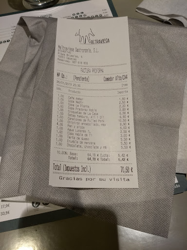 En definitiva, poca calidad, aceitoso y en consecuencia caro. No volveré. Adjunto carta y factura. Espero que mejoren la cocina porque el sitio está muy bien. Un saludo y les...