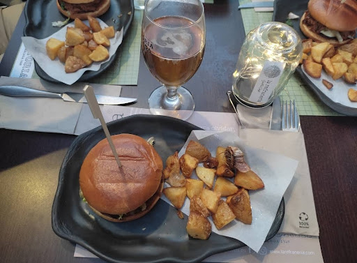 Read moreHemos ido a comer un sábado a mediodía, no había mucha gente. Hemos tomado dos entrantes y un plato principal para cada uno. De entrantes, carpaccio de presa ibérica con vinagreta de pistachos y brotes, estaba rico aunque algunas lonchas un tanto secas; como segundo entrante, queso brie al horno con frutos rojo y miel de las Villuercas, una buena cuña de queso brie acompañado por unos gajos de fresa, uvas y arándanos, la miel era un poco escasa, como pega diría que le faltaban unas tostadas o regañás para acompañar el queso, pero en conjunto estaba rico. De principal los dos hemos pedido lomo bajo de vaca con verduras tipo crudité. Los hemos pedido trinchados y al punto, sin embargo el de mi acompañante, algunos trozos, estaban un poco pasados. A pesar de ello estaba tierno y jugoso. En cuanto al postre hemos tomado brownie con helado de vainilla, quizás ha sido lo que menos me ha gustado, a mi mujer sí le ha gustado, considero que el brownie debe estar abizcochado y calentito, sin embargo era un trozo muy fino lo que hacía que no estuviera esponjoso y solo caliente por trozos, no sé si lo calentarán en el microondas. El precio con vino y refrescos ha sido de 91 euros, quizás un poco elevado pero no desorbitado. En definitiva una buena comida con alguna salvedad.