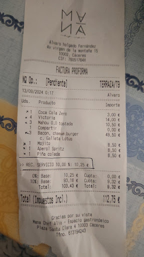 Otra cosa que no me gustó para ser restaurante, es que no nos pusieron ni un mantel ni nada en la mesa (en todos los restaurantes que vamos, en terraza, ponen manteles desechables + ó - buenos/bonitos, pero ponen manteles).