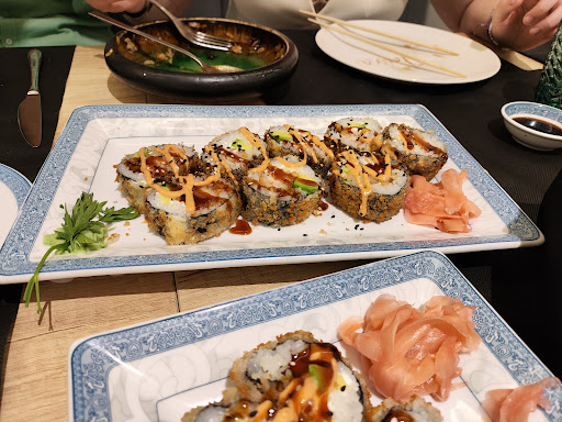 Este restaurante, que nos ofrece una mezcla de las gastronomías china y japonesa, se encuentra ubicado fuera del centro histórico, ocupando un local inmenso, con una carta igual de amplia. Cuenta también con un menú del día a 15,95 €, que incluye tres platos, bebida y postre, disponible de martes a jueves solo para el almuerzo. El local, como he comentado, es grandísimo, limpio, moderno, con las mesas a buena distancia, y además de con camareros tradicionales, cuenta con varios robots que sirven los platos. Nosotros optamos por takoyaki, sushi tempurizado de pez mantequilla, aguacate y Philadelphia y sushi con queso fundido. Con dos cervezas chinas, una botella de agua y dos flanes de té verde, la cuenta sumó 48 € para dos comensales. Todo perfecto, comida muy buena, magnífica atención y detalles de la casa, tanto al inicio de la comida como a su fin, obsequiándonos con galletas...