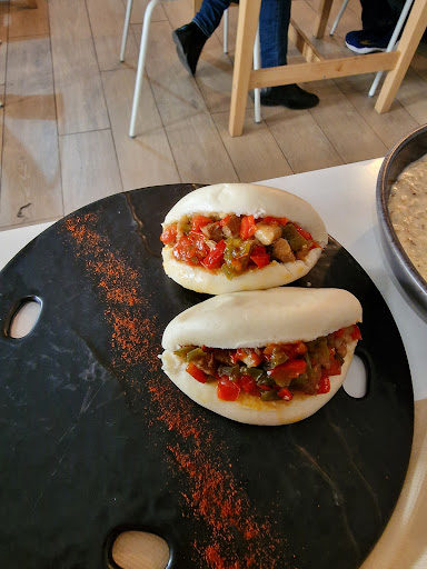Pan bao de cerdo con pimientos, que estaba realmente bueno, nos gusto la idea de mezclar un producto asiatico como es el pan bao con algo tipico extremeño como es el cerdo con los pimientos.