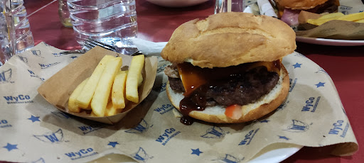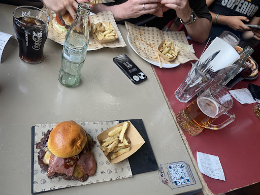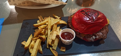 Read moreYa habíamos estado aquí repetidas veces pero nunca había hecho una reseña. Es un local muy grande que sirve comida rápida, hamburguesas, perritos, pizzas, nachos... y no decepciona. Todo está muy bueno y aunque no es un sitio barato, no está mal de precios la. Normalmente comemos un perrito caliente (que están muy buenos) pero esta vez nos decidimos por una hamburguesa especial de Navidad que tenían en carta. Lo primero que llama la atención es el pan brioche rojo, es una smash burguer doble con cebolla morada, queso y mermelada de arándanos, estaba muy rica (el dulzor de la mermelada le sentaba muy bien a la carne) aunque yo creo que los 12€ que vale es un poco excesivo. Compartimos unos nachos rancheros, muy buenos, siempre los pedimos. Lo acompañamos con una jarra de cerveza y un refresco. Es un sitio que funciona yendo a pedir, pagar y te avisan para que vayas a recoger el pedido, es verdad que cuando hay poca gente te lo acercan ellos a la mesa. El precio...
