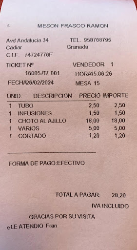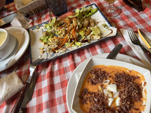 Read moreSiento no poder poner mejor reseña, pero sinceramente hay muchas cosas que no funcionan. Falta personal, mucho. Dos camareros para dos salones con bastantes mesas y una terraza, no es suficiente ni de lejos. Y seguramente también falte en la cocina, porque tardaron bastante. Pero aparte de eso, los precios no son los esperados: esa ‘ensalada de toda la vida’ no cuesta los 9€ que nos cobraron, y más en un pueblo pequeño (ni atún, ni huevo duro.. de to la vida, pero ni llevaba). El salmorejo, sin más.. no estaba pa morirse. El resto aceptable. Pero, sobre todo, falta de personal. El camarero más bajito majísimo, el otro con mal humor, y no me extraña.. con semejante...