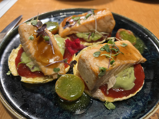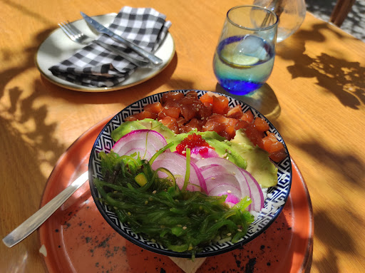 The location is beautiful - lovely white umbrellas, sun-dappled, birds singing and the old tobacco factory next to it is definitely esthetically pleasing! I always have one of the pokes bowls when I come: super tasty, everything fresh and delicious. However this time the rice was cold and crunchy! Obviously had been in the fridge for a day or two. So, note to chefs (or whoever makes these decisions) rice is cheap, and not difficult to make, please serve it fresh and preferably still somewhat warm. They also used the wrong kind of rice today, normally poke rice is short grained and bit sticky - like sushi rice... not long grained crunchy and dry. Service is a mixed bag, when I complained about my rice she took it away politely no questions asked a brought me a new one (thank you!). And in general it was much easier than the regional norm to catch the servers' attention! One thing that can happen here is buskers come and play music at a horrific volume. Big picture: a super restaurant, with a unique menu and most-of-the-time delicious fresh food set in a...