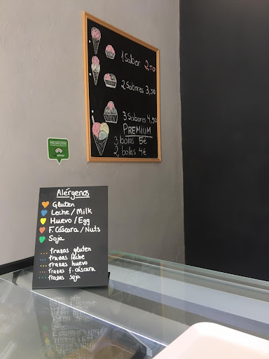 El local es pequeño y sencillo, pero no en el sentido negativo, sino que es directo a cuánto el servicio de servir helados artesanales. Tiene tanto en tarrina de tres tamaños como en cucurucho. Yo opte por el primero, puedes incluir más de un sabor según el tamaño hasta 3 en el grande. El precio del mediano con dos sabores son 3,5€ que está entre medio-alto comparado con otros similares.