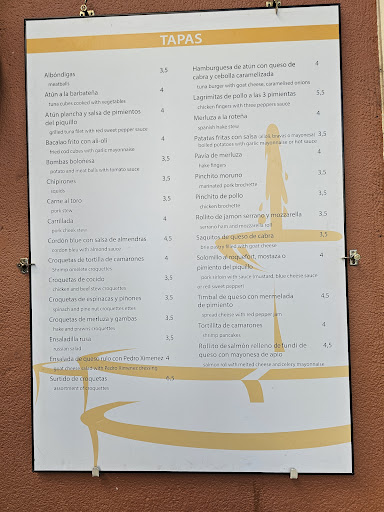 Read moreMe encanta, un autentico espectáculo, no he visitados muchos sitios de comida en Cadiz todo hay que decirlo pero este he repetido, la simpatía, el buen trato al cliente, y la rapidez con la que te atiende y te sirven lo pedido es lo que hace de este sitio algo que te encanta, por no mencionar la abundancia de sus tapas, lo rico que están sus platos y el precio de estos, las tortillas de camarones en especial hacia tiempo q no iba a un sitio a pedirlas que no trataran al plato como lo q son “unas tortillas de camarones” hace tiempo se convirtieron en algo especial como si fueran algo gastronómicamente fuera de lo que son, vendiendo este producto por unidad y a un precio desorbitado, en este local te las ponen de 2/4/6 según sea tapa media o entera, como debe ser y eso dice mucho del local, las croquetas están muy buenas se recomienda el surtido, el timbal de queso con mermelada de pimiento un plato abundante muy rico y bien presentado, en general un sitio de repetir siempre muy recomendable.