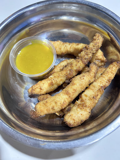 Fingers de pollo de la casa con mostaza y miel (5€). ⭐️⭐️⭐️⭐️.