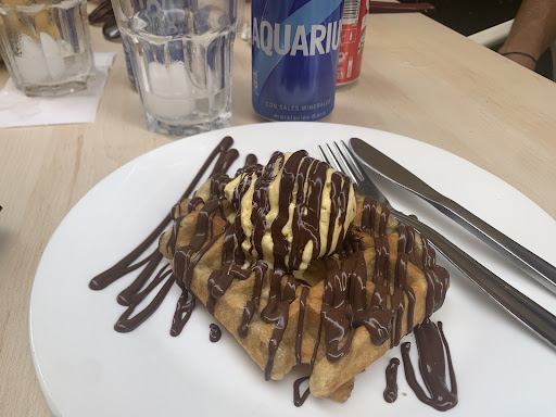Read moreIf you're looking for an authentic place to drink coffee and have a snack, this is it. The place is packed with Spanish speaking people, no music, just a place to sit and drink/eat. No A/C so if you can sit outside. Once you get a spot, someone will ask what you want. The green walls are weird but the workers...