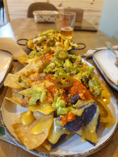 Read moreAcabamos aquí porque un local típico de tapeo al que teníamos intención de ir que está cerca estaba completo. Pues que bien que estaba lleno. Fuimos tres y partiendo de que ninguno somos ni medio-vegetarianos, la comida nos pareció exquisita. Elegimos los nachos, los champis rellenos, las alcachofas (disculpas por la foto de las alcachofas, se nos olvidó sacar la foto antes de empezar a comérnoslas)y los tacos. Difícil de destacar un plato por encima de los demás: todos espectaculares. Rematamos la faena con una tarta de zanahoria y un vasito con un postre a base de tocino de cielo. Ambos riquísimos. Eso más agua, cerveza y cafés por menos de 80€. La atención de Raquel...
