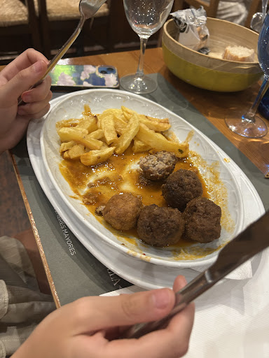 Read moreThis place was supposed to be one of the top spots for dinner in Cadiz. Maybe it is, but to me it was down right average. The service was extremely poor: the waiter was almost rude to us, we could not get a glass of wine (we had to buy a whole bottle) he could not be bothered to help us choose a wine and when we ordered the second mineral water he dropped it on the table and left. Not to mention that we had to recycle the cutlery of the entrees to eat the main!! The olives we got with the bread was the best part of the meal, as far as food is concerned. My entree was not too bad, but my wife's Salmorejo was average. The Cod cooked Vizcaya style that my wife ordered was pretty good, but my pork ribs went straight back. Please note: I never send food back, but this time the dish was so ugly I could not eat, including the extremely soggy and greasy chips. I only ate the huge tomato slice. There is no way I can recommend this place for eating! Very bad dining experience, something...