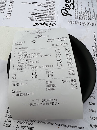 Read moreNo recomiendo absolutamente nada este restaurante y os expongo las razones a continuación. En primer lugar, al sentarnos en la mesa no la limpiaron, algo que me parece imprescindible, es como si los cubiertos no se lavaran entre cliente y cliente, pero bueno, eso no es lo peor. Si queréis comer una pizza de calidad NO vayáis a este sitio. Y da igual si eres poco exigente; la masa de las pizzas estaba blanda, con un sabor a harina industrial y una textura un poco extraño, se me asemejó a cuando haces una pizza congelada en el microondas, sin exagerar. La calidad de los ingredientes igual, no estaba a la altura. El precio no es elevado ya que las pizzas rondan los 6-9 €, pero repito, no merece la pena pagar ni un céntimo. El trato en general fue correcto salvo que se les pasó el detalle de limpiarnos la mesa, qué despiste. No me gusta ser tan crítico ni tan duro con los restaurantes a los que voy, intento empatizar y sacar lo bueno de todos ellos, pero es que aquí “no hay donde rascar”. El nombre no hace referencia a su calidad, no esperéis encontrar sabor italiano porque brillará por su ausencia. Por último, si queréis comer pizza buena y de calidad tenéis en el mismo centro de Cádiz Osare y Confusione, que no os dejarán indiferentes, así como Los Napolitanos en San Fernando, ejemplos de que cuando se hacen las cosas bien, con entusiasmo y ganas, puedes atraer a una clientela de confianza y mantenerla contenta....