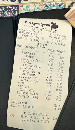 Once they came, one of the dishes we asked for were “already sold out” and we had to order alternative, which happens in Spain and is no big deal, but definitely added some frustration when trying to order for 40 minutes and no one minds you.