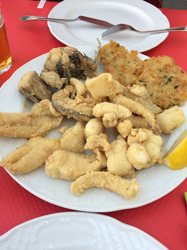 Our lunch here today was a perfect example of making sure your children aren't ratty and hungry when you arrive in a city with an amazing reputation for food. We drove 90 mins to Cadiz from near Estepona. We love great food and great drink (I sell wine for a living). I was sooooooo looking forward to an amazing lunch. But we needed to feed the little darlings ASAP and we made the schoolboy error of not doing a little research beforehand. We headed to the food market area, thinking this must surely be somewhere you could only find decent grub. A charming lady beckoned us over, as one of the children started eating one of the others, and we let ourselves be talked into sitting down. Oh, how we regretted it... The warning signs should have sounded when we asked for a fino or amontillado and the charming lady said "No, we have dry white wine or semi-sweet". We're just down the road from Jerez and Sanlucar, for Pete's sake - how could you NOT have a bit of dry sherry? But anyway. We ordered food and the first plate to arrive was a mixed salad. I thought iceberg lettuce went out with the ark, but here it was, along with some revolting rubbery cheese, strips of asparagus 'fresh' from a tin and a couple of bits of tomato. And orange. The tomato was OK. Next up, some seafood-stuffed peppers. They were OK, too. Then it was time for 4x chicken nuggets and fries for the kids. The fries were actually alright, but the nuggets would have made Mcdonalds cringe with shame. They went mostly uneaten. The paella-esque dish then arrived and it was indeed soupy and watery, as other reviewers have commented. My friend likened it to prison food. My grilled swordfish was next. Fishy-smelling cardboard would have been a more accurate description. I left most of it. The ratatouille-like accompaniment was just a bunch of vegetables, sadly grouped together in a red sauce. My wife's deep-fried calamari were average at best. For all of this desperate mediocrity (and that's being nice), we paid 140€. How can these people go home at night and think they've done a good job? They were friendly and welcoming - and, as a fellow small business owner, I don't wish them ill. But I am struggling to think of a more desperately disappointing meal that I have hardly eaten in the last twenty years. It was lamentable. So, going back to the beginning, don't ever arrive in somewhere amazing like Cadiz with uber-hungry children and without a plan of exactly where you are taking them. Or you might end up in somewhere as similarly...