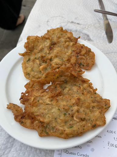 Read moreWe were recommended to come here by a local and I am definitely glad we came. You have to ask for a table, which waited about 15 minutes for (there were just 2 of us). They have a bar you can order a drink at while you wait, which was great. The drinks just get added to your tab as you wait for a table. You can’t go to the bar unless you’re going to sit down for food. The food was traditional and perfectly executed. We had the salmorejo (great balance of tomato and garlic, not too much garlic at all), croquetas (stuffed with chicken and bechamel —maybe my favorite dish), the fried gallo (fried fish —very good but maybe a bit dry), the grilled chipirones (full squid that has great seasoning and a side salad of tomatoes, peppers and onions, that was much appreciated). Seating is all outdoors and the hostess was very accommodating, she offered us a table on the side street right away in case we were very hungry but understood when we turned her down to wait for a better table. There were live street musicians playing whims we ate our delicious lunch. They take credit card here, which is super convenient. I would come...