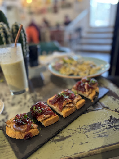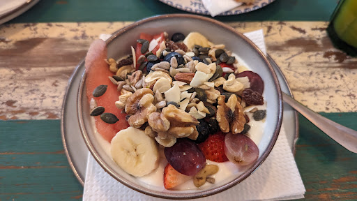 Wir waren zum Frühstück hier und waren überrascht, wie viele Optionen auf der Karte standen. Der Joghurt mit Früchten war frisch und lecker, die Churros ebenso. Ansonsten gibt es frische Säfte und Milchshakes, Pancakes, diverse Gebäcke und auch die Möglichkeit, sich selbst ein Frühstück / belegtes Baguette zusammenzustellen. Neben dem Frühstück gibt es auch eine wöchentliche Karte mit warmen Gerichten sowie eine Vielzahl an Tajines, die ebenfalls sehr interessant klangen. Auch als Vegetarier kommt man hier definitiv auf seine Kosten.