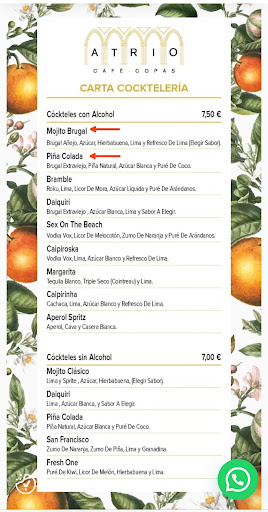 Os dejo una foto de la carta (que supuestamente no existe), donde claramente pone “mojito” y “piña colada”.