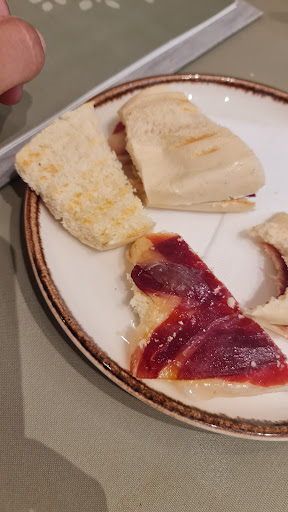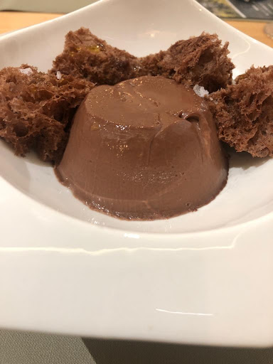 📸Espectacular caldo hecho con el jamón de bellota 100% ibérico y estupenda tabla surtida de quesos de oveja y de cabra elaborados artesanalmente con 100% leche cruda y psteurizada 📸Pero una de las joyas de la corona es la selección de ibéricos. Así que probamos una increíble tabla surtida de embutidos de bellota, con caña de presa de bellota ibérica, lomo de bellota 100% ibérico, salchichón de bellota ibérico y chorizo de bellota ibérico 📸Impresionante jamón de bellota 100% ibérico, todo de su gama premium 📸Más elaborado es el fantástico pan bao con pierna de cordero recental, con un magnífico sabor alejado del bovino que puede crear cierto rechazo a algún comensal 📸Y exquisito el steak tartar de solomillo de bellota 📸Para terminar con la parte salada, un sabroso y tierno entrecot de vacuno añojo de Carnes COVAP que además lo puedes acompañar perfectamente con unos buenísimos pimientos del piquillo estilo Julián de Tolosa y un puré de patas estilo Joël Robuchon, de los mejores que he probado 📸Para terminar, una rica panacota de chocolate