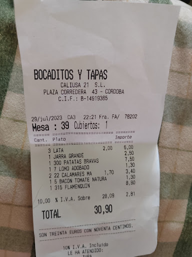 Read moreDespués de un día de mucho calor por Córdoba, decidimos entrar en un bar el cual supuestamente estaba climatizado anunciado con un cartel en la puerta. Para nuestra sorpresa al entrar los aires estaban apagados. Unos clientes de la mesa de al lado han preguntado por la falta de climatización a lo que el encargado respondió que el dueño se lo tienen prohibido porque ha pagado 4000 euros de luz. Este dato no tiene porqué saberlo el cliente, por lo que es una falta de respeto a su jefe. Podría haber mentido con un están estropeados. Es de agradecer que finalmente lo pusieron. Cuando estábamos sentadas en la mesa, comiendo hemos oído como han criticado los camareros a más de un cliente ... Incluidas nosotras que se pensaban que no estábamos allí... Hemos escuchado solo parte de la conversación... Ni siquiera me hace falta escucharla entera para catalogar a los empleados de tener poca vergüenza, al fin y al cabo están trabajando cara al público y delante de éste deben comportarse adecuadamente. Después fuera del puesto de trabajo que critiquen o comenten lo que quiera.