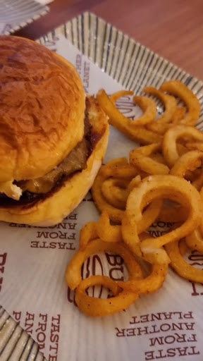 La de pollo es nefasta, es una cosa Congelada que para llevar queda aún peor, no es crujiente y el exterior se separa quedando un pollo súper sintético y de textura blanda espantosa. Una decepción, las de carne no están mal pero nada del otro mundo. Prefiero otras hamburguesas de la zona. Y el camarero que nos atendió para llevar, uno alto delgado, parecía que estaba recién despierto…