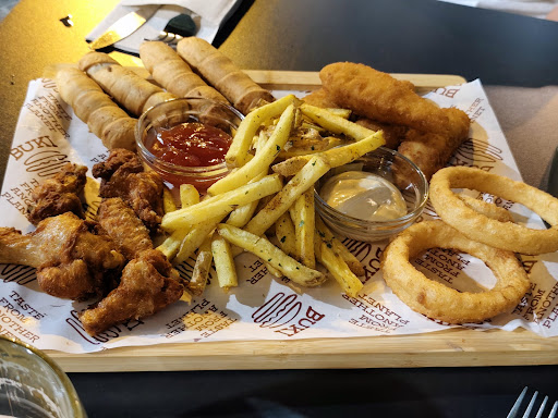 "Mi primera visita a Hamburguesería Buki fue un éxito total. Pedí las patatas cruch y fue un acierto, la salsa y el pollo estaban muy buenos. La hamburguesa cawboy estaba muy bien hecha y servida. El precio es lo normal para este tipo de comida, lo que es razonable. El servicio fue rápido y atento, y la camarera que nos atendió fue muy agradable y atenta. El ambiente estaba bien cuidado y era agradable, lo que hizo que la experiencia fuera aún más disfrutable. Sin duda, volveré a visitar Hamburguesería Buki."