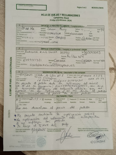 Read moreLamentablemente no volveré, ayer pasé el peor episodio que se puede pasar, debido a un problema con vuestra aplicación no me pusieron el pedido incluso estando pagado y con el ticket en la mano, los trabajadores que estaban en el turno de noche actuando de forma despectiva, riéndose de mi, con actitud chulesca y un comportamiento no acto para estar en un restaurante de cara al público, puse hoja de reclamaciones, me han devuelto el dinero porque he pagado con PayPal y he abierto disputa, seguro que sí hubiera pagado con tarjeta, no lo hubiera recuperado, pero lo más lamentable es la actitud barriobajera, desde mi punto de vista, de los empleados, no sé corresponde con la marca, un desprestigio total. No entiendo cómo se realiza la elección de personal, el comportamiento totalmente fuera de contexto, según mi opinión, como si estuvieran vendiendo piensos para animales, con actitud descuidada y ademanes que están fuera de la ética de toda empresa, dejando por los suelos, bajo mi criterio, la reputación de burguer King, el episodio sucedido fue en el restaurante de Córdoba en Avda. Libia dentro del Centro Comercial Carrefour Zahira. Espero recibir una disculpa por parte de la empresa. Y una explicación de los criterios de elección de personal, que aunque yo no tenga nada que ver con la empresa, como cliente, considero que tengo derecho a saber en quién confío mi alimentación y...