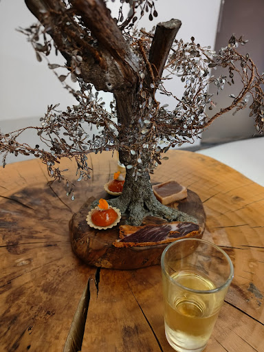 Read moreWe had the full tasting menu - 17 courses, I think?! - with wine pairing and it was a delight. We spent several hours being led on a gastronomic tour of historical Cordoba and Andalucia by our knowledgeable and enthusiastic waiter (who happily for me spoke English). The courses were served in three locations, one of which being the kitchen so we could watch the cooking and prep as we ate (one course here was smoked in lavender in front of us, as we were sprayed with local wine which was apparently once a sign of a gentleman's affluence - I love learning while I eat!). All beautifully presented, as one would expect for a Michelin starred restaurant, but not too gimmicky, and I didn't find it pretentious (although the final petit fours were served in a spinning box of jewellery, which I didn't fully understand). Some of the dishes were truly exceptional, with the 'choco' (the restaurant's signature dish) being my favourite: finely sliced cuttlefish with a sublime silky texture. It was the sort of mouthfull which makes you roll your eyes back and sink down into your chair. The pork dish was also remarkable - it had an ultra thin layer of glazed, perfectly crispy skin and I cannot comprehend how it was achieved. The meat itself was so soft I wanted to cry with joy a little. Rosemary baked bread was served with goat milk butter topped with a little caviar, and that was delicious (plus they could accommodate gluten-free folk). Worth noting too that we were served a fried prawn head and legs. I'm an adventurous eater but I balked a little at that one - looked too much like a spider. However, I sucked it up - literally! - and can confirm it was like a very light pork scratching. It wasn't an inexpensive afternoon (€450/€500 ish for 2, with the extended tasting menu, wine pairing, and a couple of extra drinks before and after), but sometimes you get what...