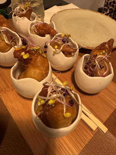 Read moreNOS ENCANTÓ y sin duda volveremos. La comida buenísima y con una presentación muy original, el ambiente en plena corredera espectacular también, pero sobre todo, destacar el servicio y la atención de los camareros que fue inmejorable, éramos una mesa muy grande y pleno día de Reyes, estaban a tope de servicios. Estaba todo buenísimo, pero los platos que más nos gustaron fueron las bravas (súper originales), los saquitos de bacalao, el mantou de rabo de toro, el tataki de vaca y el flamenquín (no es el típico flamenquín, merece la pena probarlo). Como digo,...
