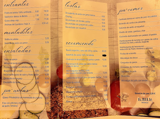 Read moreHe estado en varias ocasiones y la comida no me acaba de convencer. En esta última ocasión, reservamos para 7 personas. La atención buena, la carta amplia, los precios comparados con el tamaño de las raciones un poco elevados. Pedimos mazamorra (muy líquida) aunque el contraste con el helado estaba buena. Las albóndigas de choco demasiado saladas, el flamenquin normalito, el churrasco con roquefort bueno con poquitas patatas, sin postre y con bebidas varias fueron 72€, la maceta de cervaza 3€. En otras ocasiones hemos probado los buñuelos de calamares en su tinta y canelones... Están ricos pero no son platos baratos. La verdad que el bar siempre está lleno pero no nos acaba de convencer. La verdad que el bar...