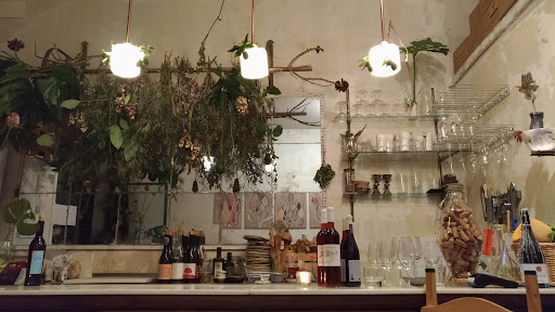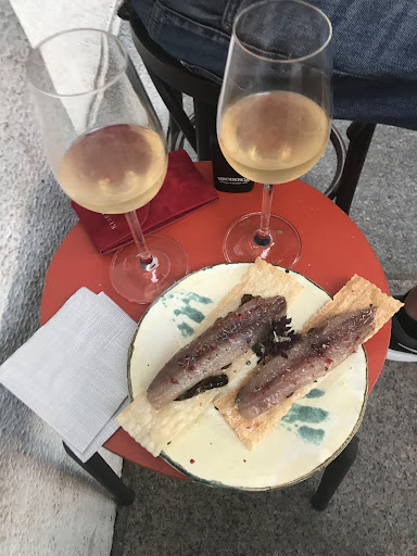 We were attracted to this little wine shop by the warm glow cast across the little park adjacent. We went for a wine tasting (cata). The host, Gaby, is attentive and knowledgeable about her natural wines. She served some light snacks with each of about five wines (small tasting pours). Cheese, then veggies, chorizo and so on. At one point, Gaby told the two couples at the tasting that her card reader wasn’t working, so we had to pay cash. (Trip to the atm was necessary). And also mentioned at one point that the tasting was ‘expensive’. Had a good time, but certainly did not have a meal. At the end, we were all pretty shocked at the €50 price tag. Per person. So, for a glass of natural wine in a charming setting, I would recommend this intimate space. But for a wine tasting (cata), stick to a bodega if that price...
